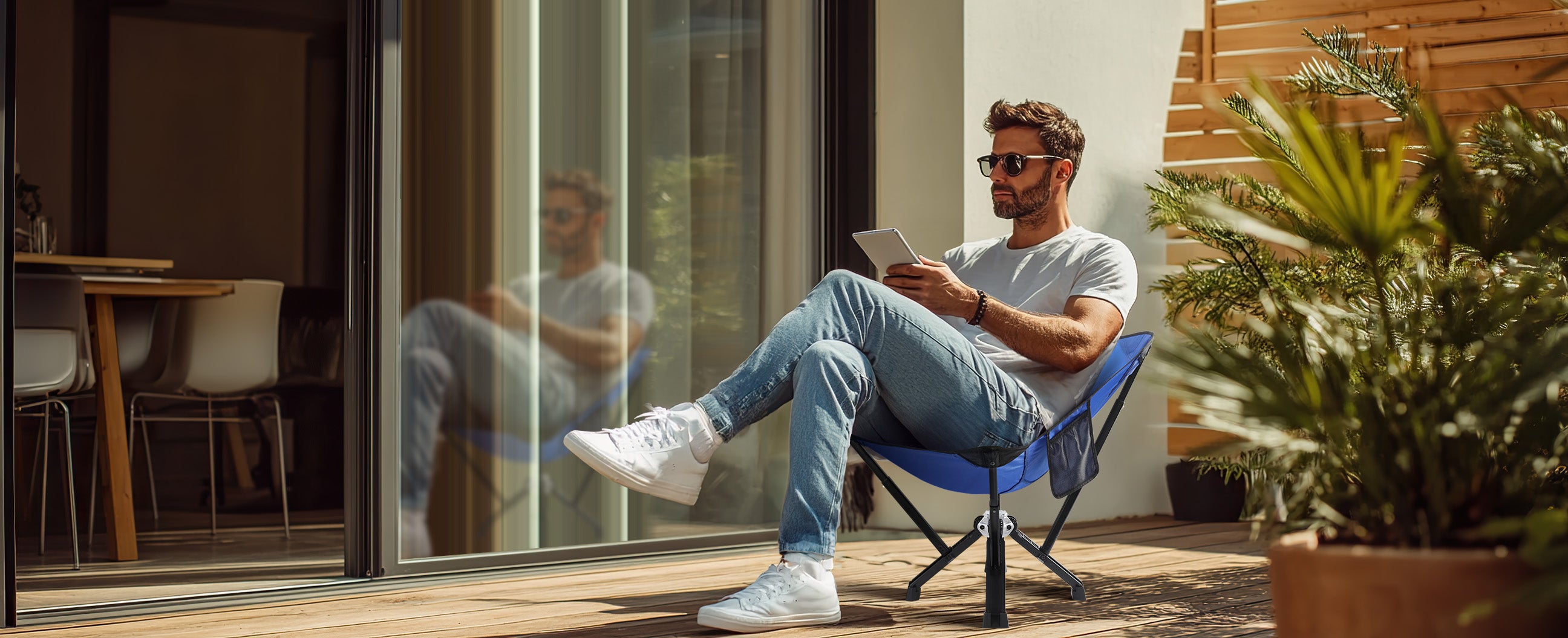 I wasnât expecting the chair to fold out so big and have such a high back! Itâs super comfortable to sit in and feels like a hammock without the swinging. It does fold down quite small but have a bit of weight compared to other folding chairs that are smaller.